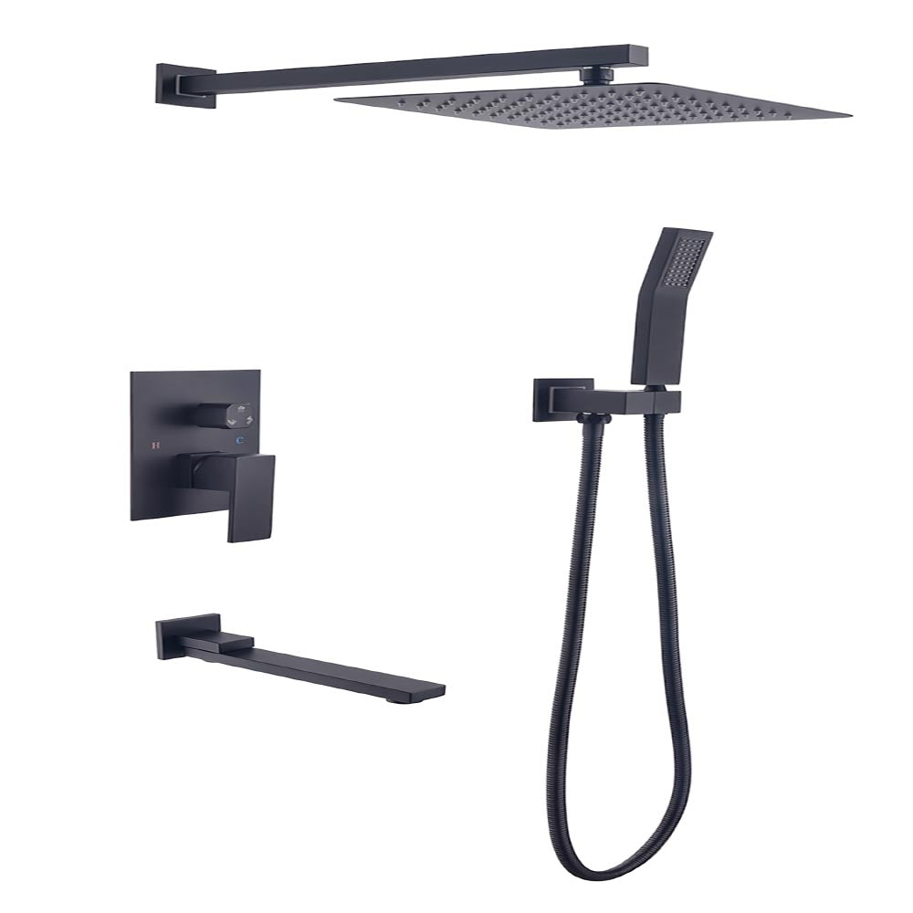 Shower System 16 Inch Square Bathroom Luxury Rain Mixer Shower Combo Set - Black