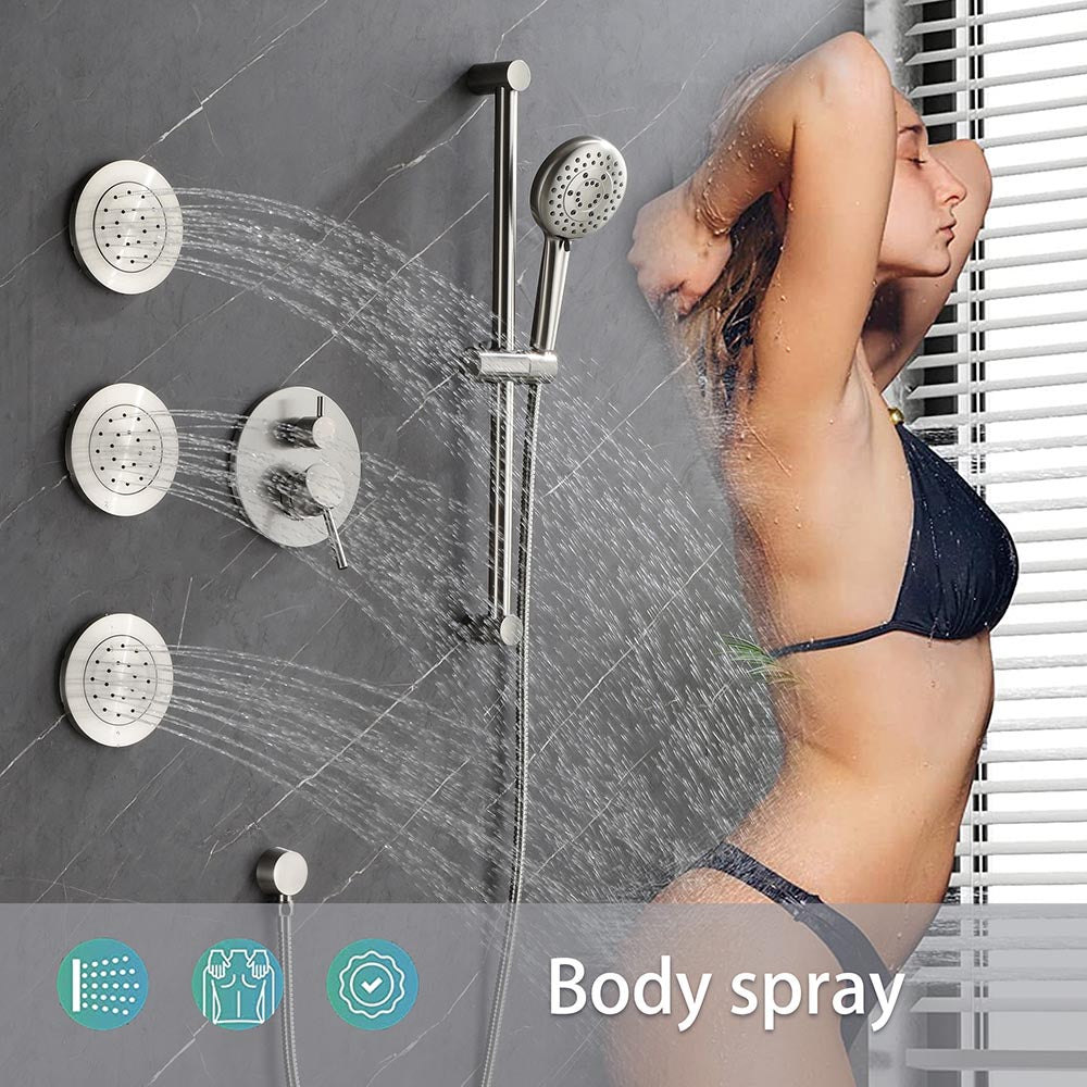 Shower System with Shower Head Hand Slide Bar Bodyspray Shower Arm Hose Valve Trim and Lever Handle - Brushed Nickel