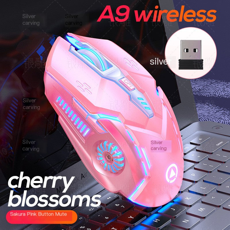 Silver Carving A9 Luminous Mute Gaming Wireless Mouse Girls Pink Laptop Accessories