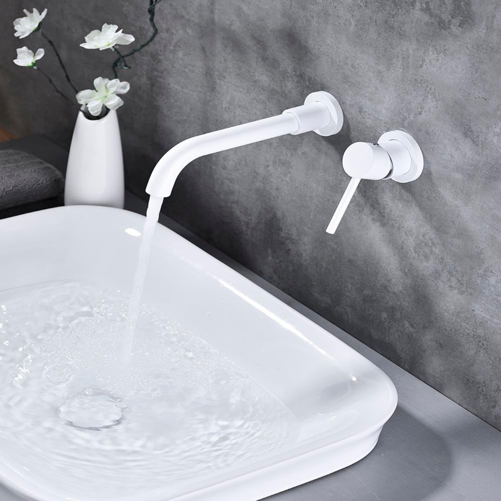 Single Lever Handle Wall Mounted Bathroom Faucet - White