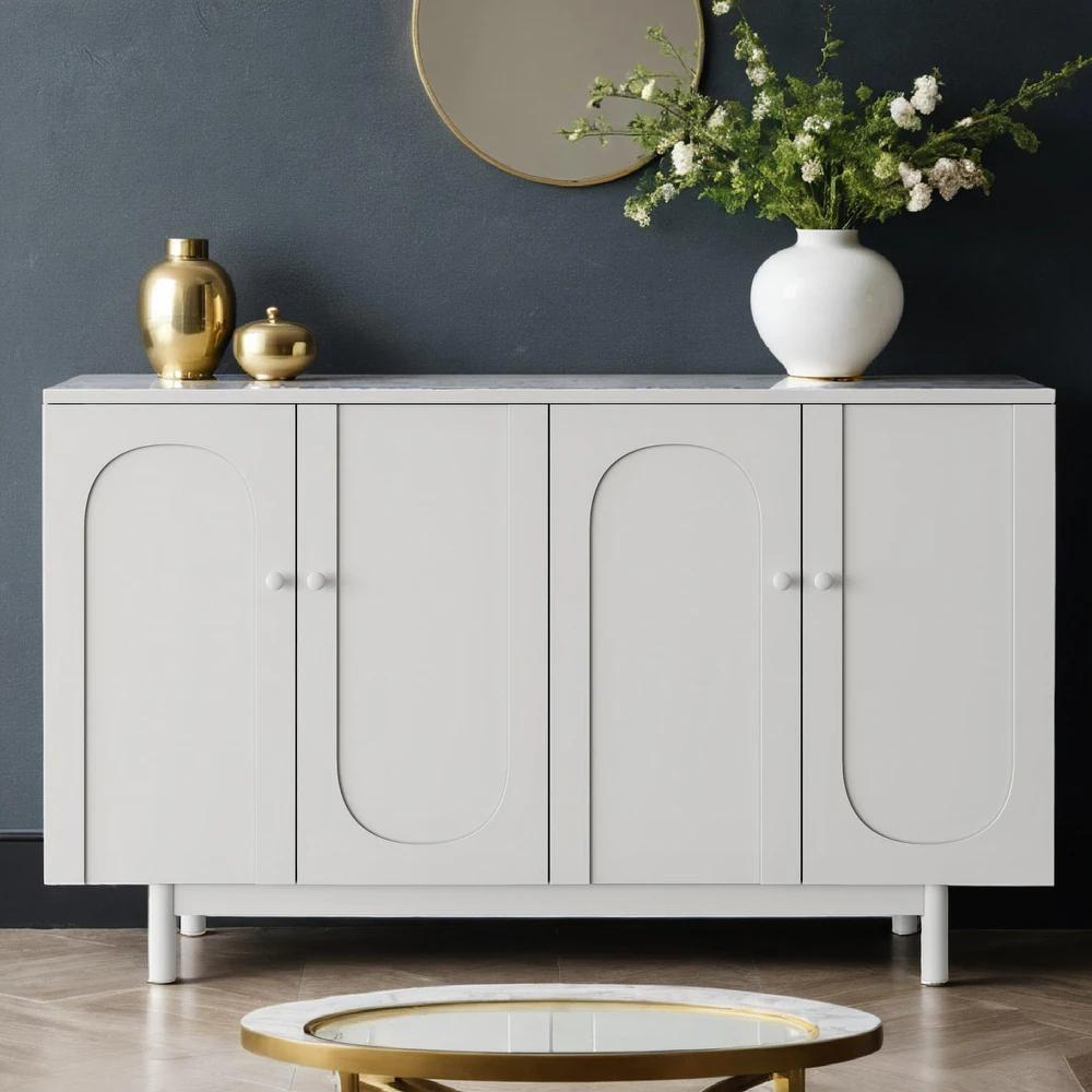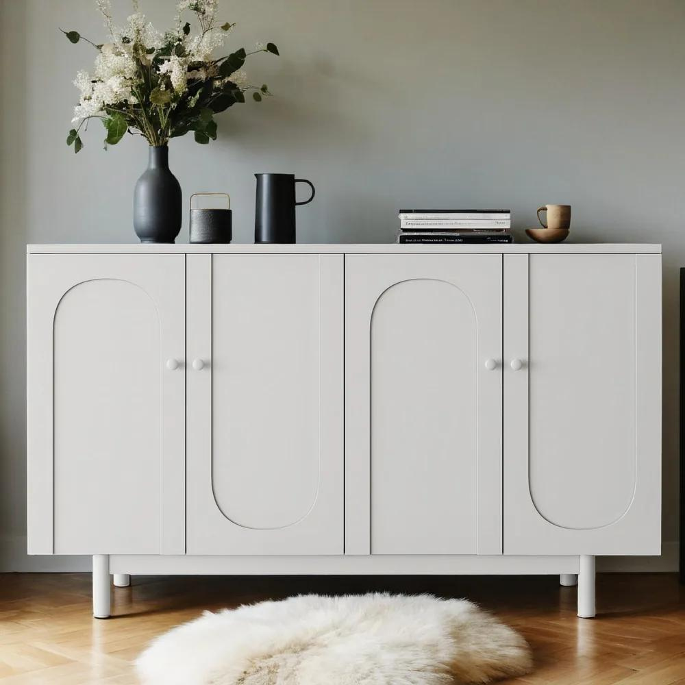 Sleek and Versatile 4-Door Intaglio Storage Cabinet
