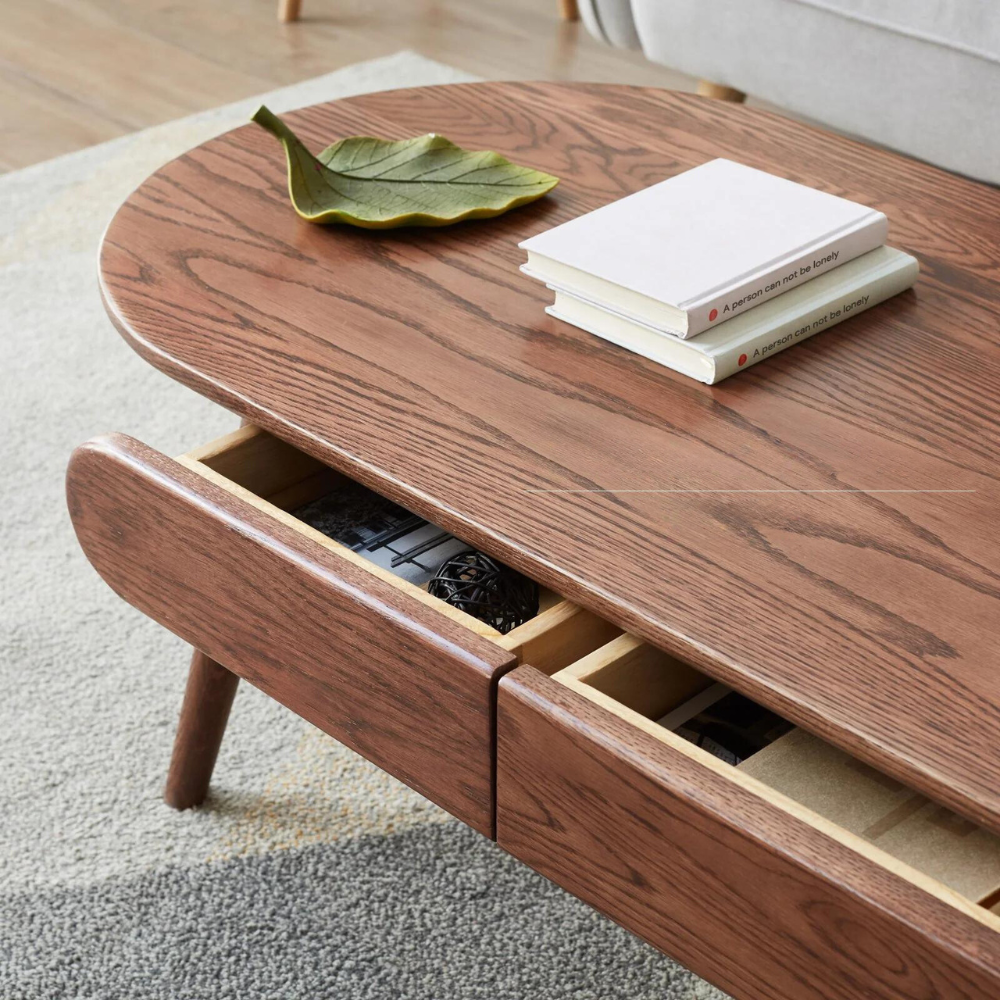 Designed with practicality in mind, this table includes convenient drawers for added storage, keeping essential items like stationery, remote controls, or personal accessories within easy reach. The natural wood finish gives it a timeless look that complements various interior styles.