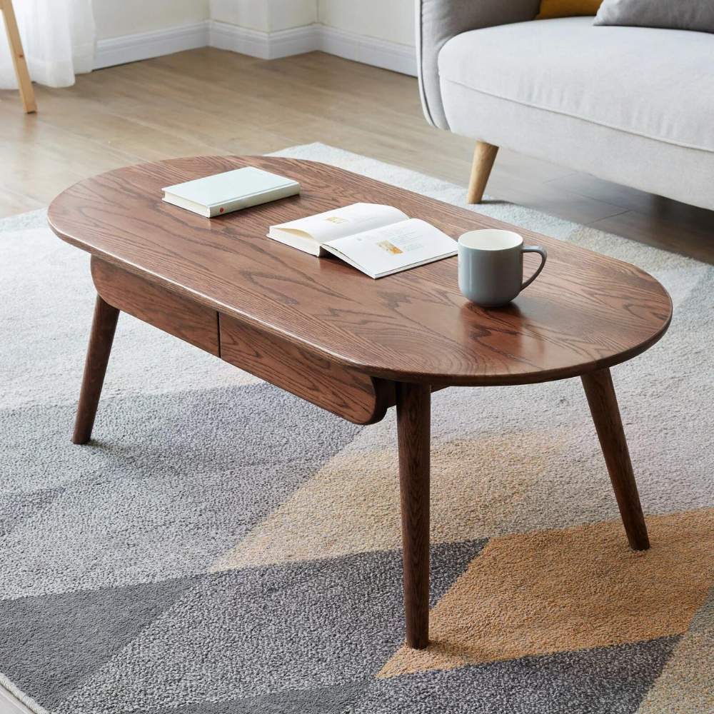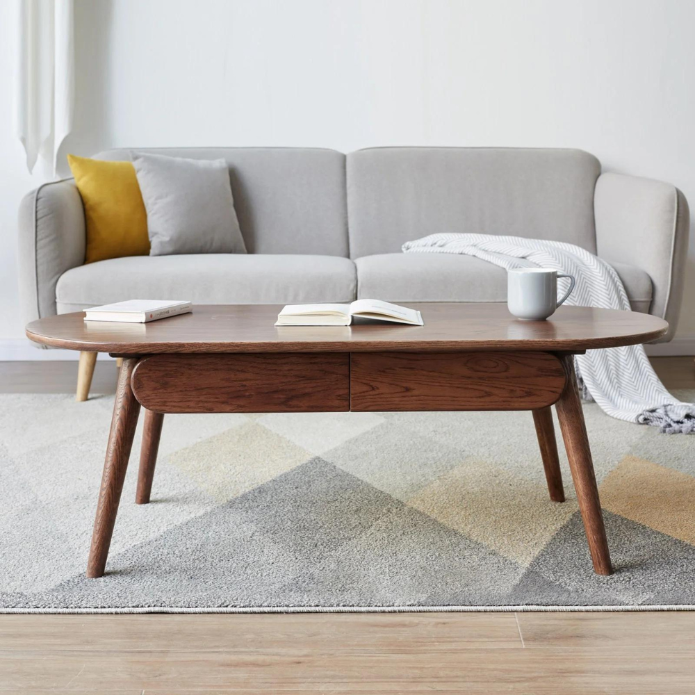 Its sleek design features a smooth top board, perfect for various uses like a coffee table or a study desk, making it a fitting addition to any living room, home office, or workspace. It offers ample surface area for tasks like writing, studying, or working from home.