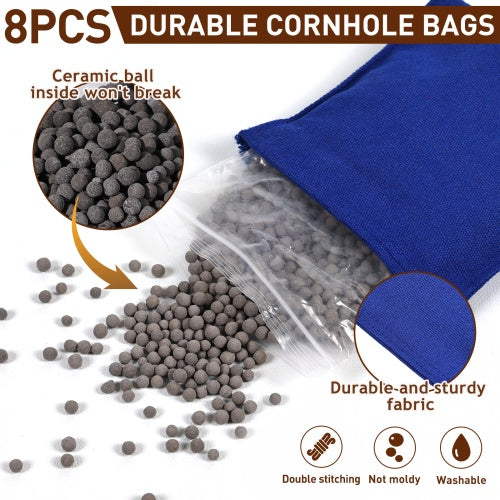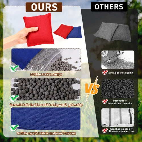 All-weather bean bags: Includes 8 premium prescribed size bean bags (4 red + 4 blue, no logo), filled with clay particles, no mold, no slag