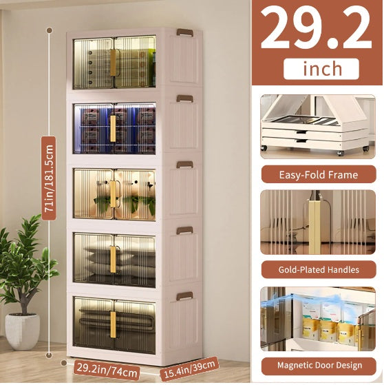 Product Name: 5 Piece Set of Stackable Storage Boxes Folding Storage Boxes with Lids, Closet Storage Boxes & Storage Boxes, Folding Storage Boxes with Doors Folding Storage Cabinets Storage Boxes (29.2" Wx15.4 Dx71.5 H)