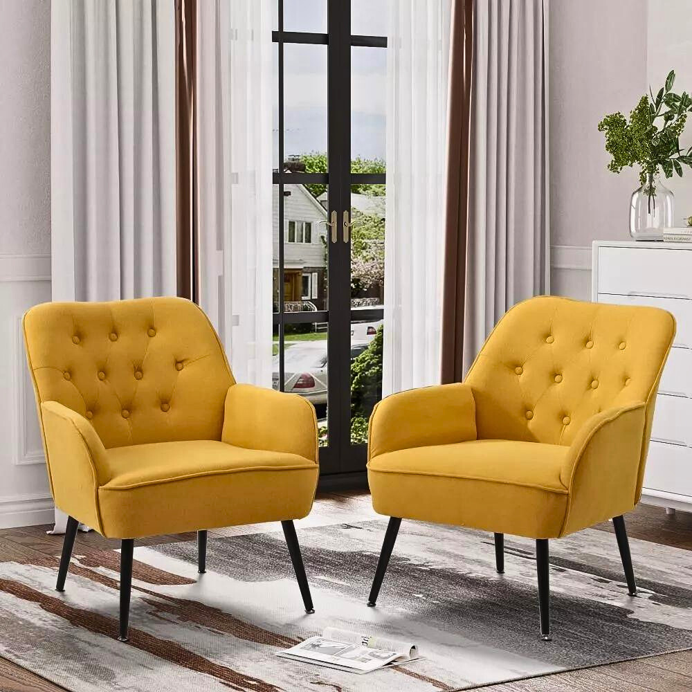 Built with an iron frame, this armchair is both sturdy and stable, ensuring long-lasting use. The iron construction supports a weight capacity of up to 250 lbs., making it suitable for a range of body types. The legs, also made from high-quality materials, are finished in a neutral color that harmonizes with the upholstery, further enhancing the chair's elegant and cohesive look.