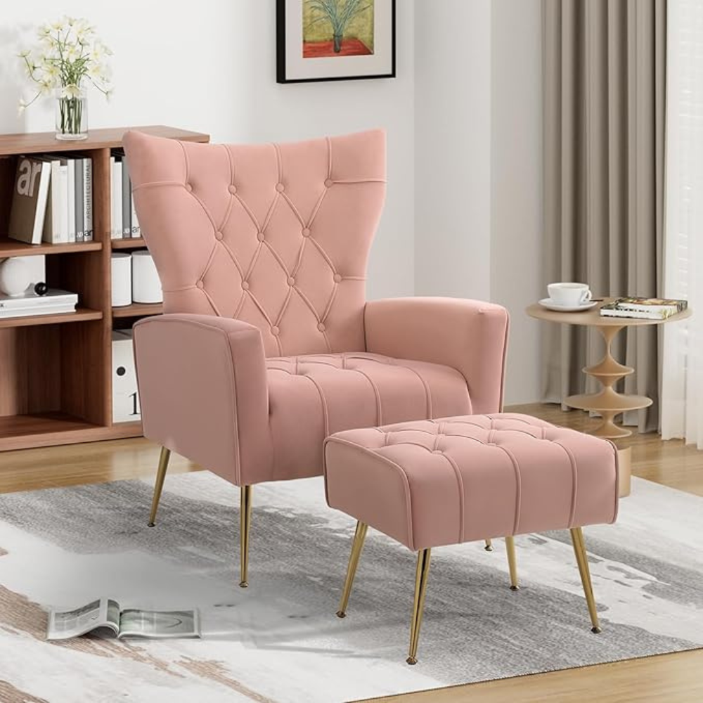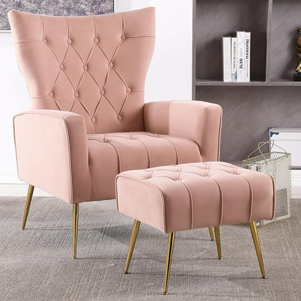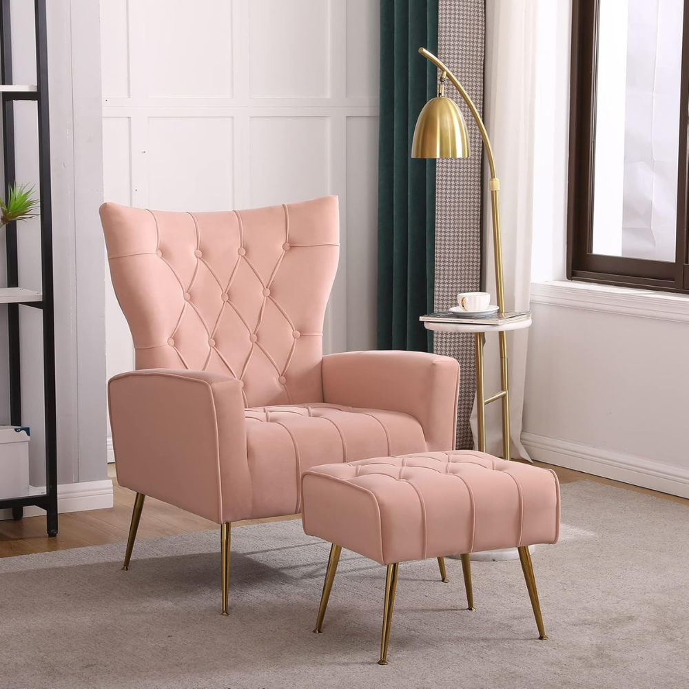 Stylish Pink Accent Chair with Ottoman