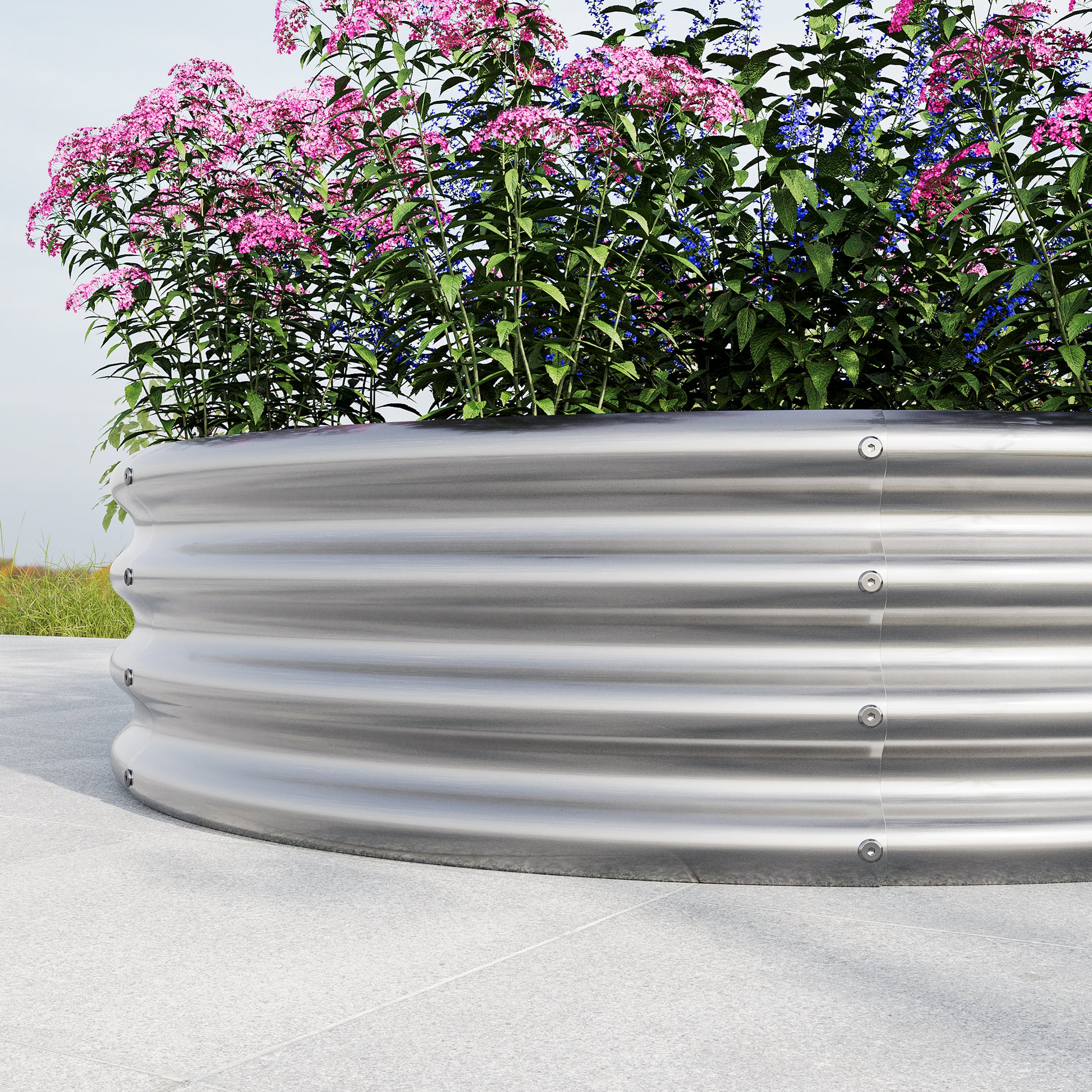 Tall and Round Raised Planter Outdoor Garden Herbs and Vegetable Bed- Silver
