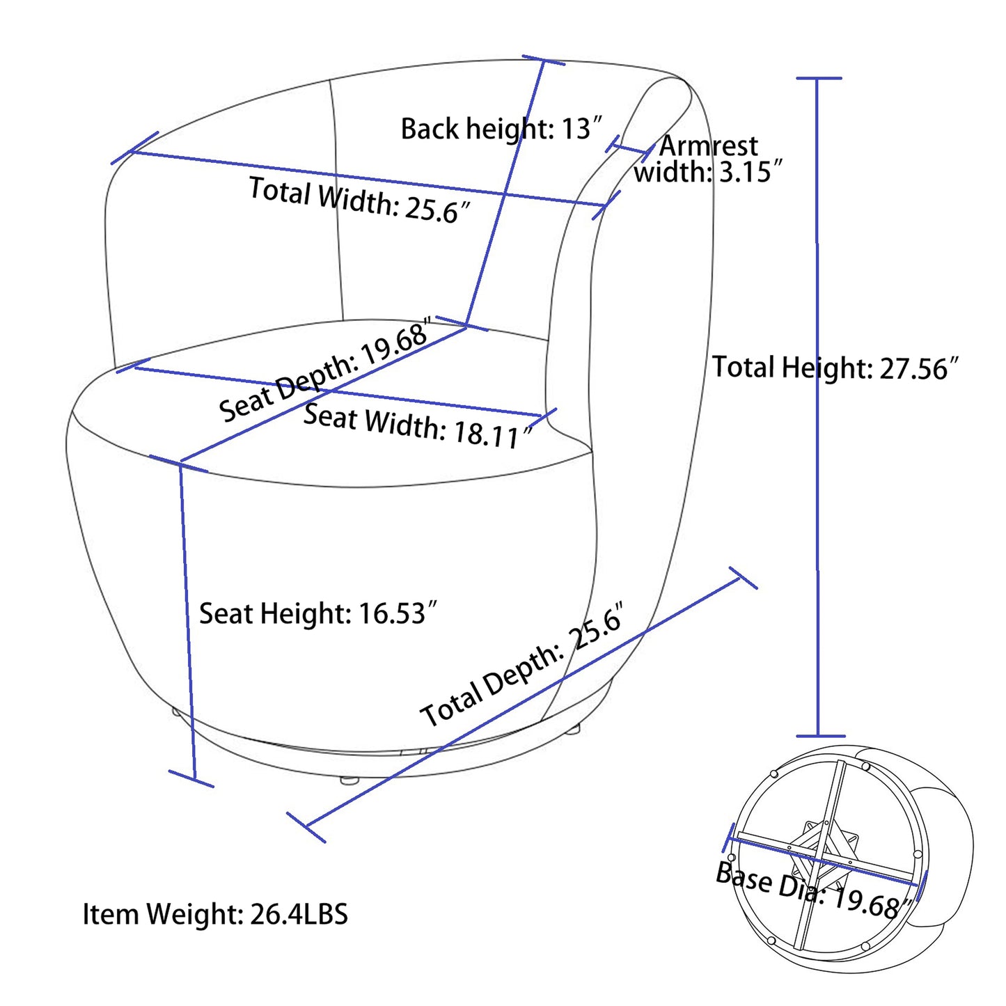 The swivel chair adopts advanced teddy fabric which is soft and skin-friendly. The exquisite design makes the barrel chair more elegant. The fashionable appearance is ideal for your room decoration.