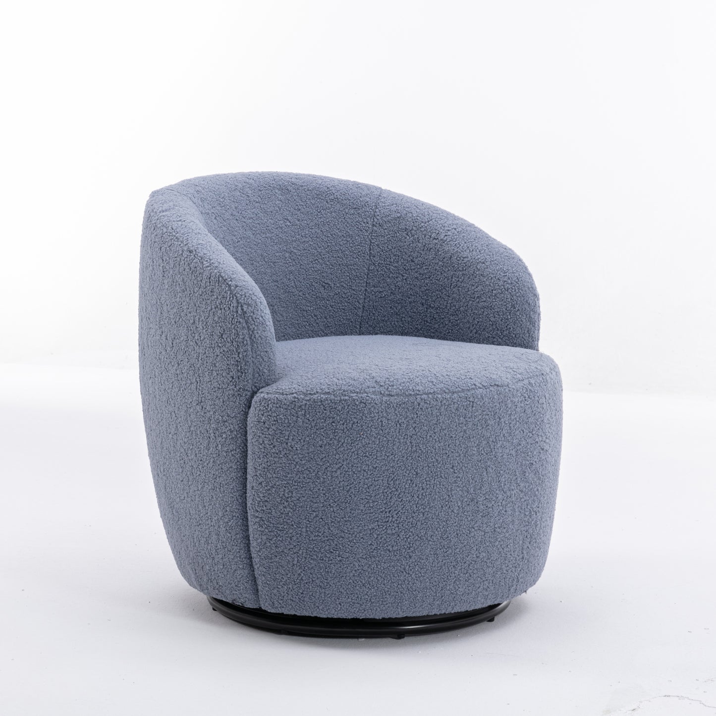 Teddy Fabric Swivel Accent Armchair Barrel Chair With Black Metal Ring- Light Blue