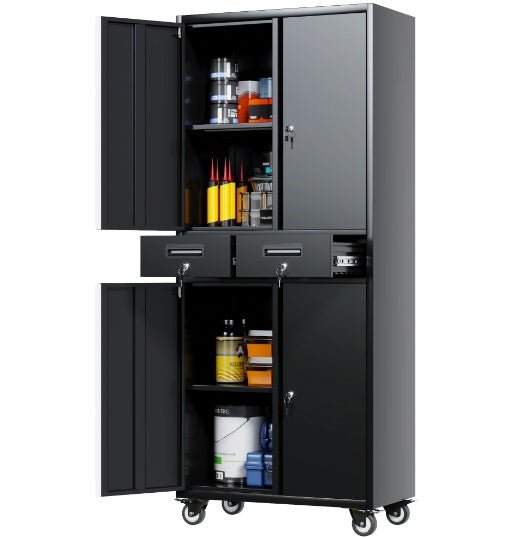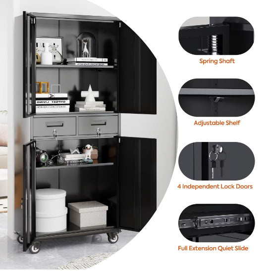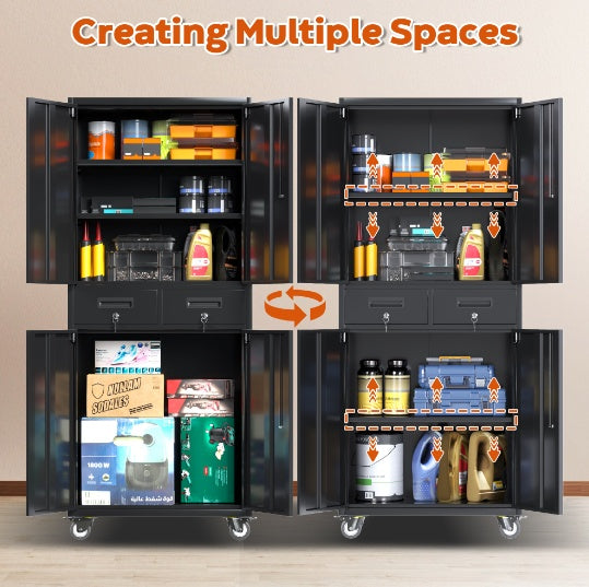 Tool Storage Cabinet With 4 Wheels And 2 Drawer And Adjustable Shelves