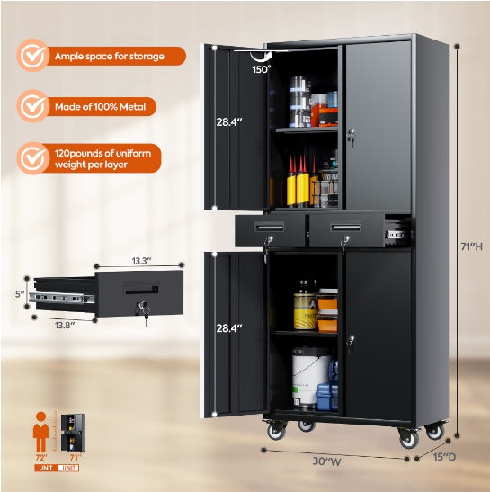 - 【Multipurpose】This metal storage cabinets with wheels provides versatility and practicality for your storage needs. Perfect for homes, offices, schools, garages, utility rooms, warehouses and anywhere you need storage space.