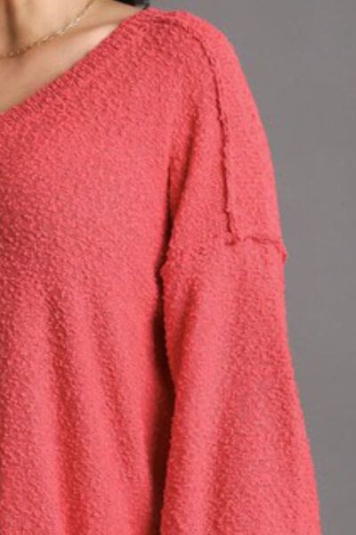 Umgee Full Size Dropped Shoulder Side Slit Sweater Plus Size