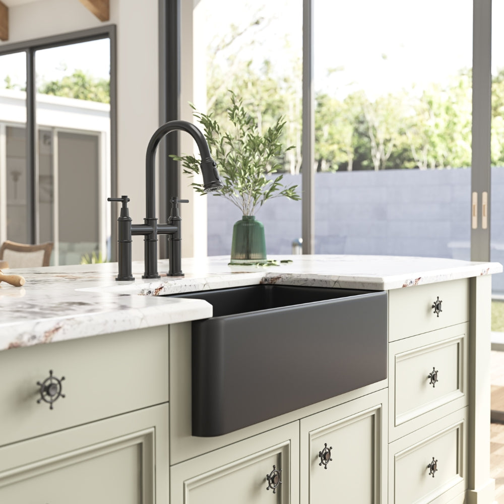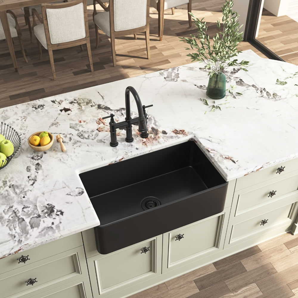 Constructed from true fireclay, fired at 2900°F for unparalleled strength, this sink features a durable ceramic surface treated with a high-temperature vitreous glaze to fend off stains and scratches.