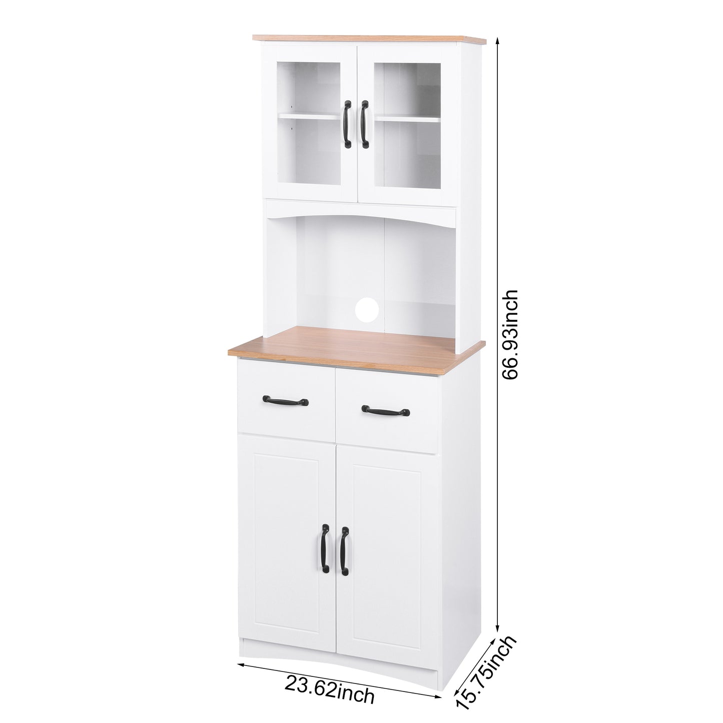 The open middle space can be used to hold kitchen appliances such as a microwave or coffee maker. Keep organized behind the 4 doors, so your items stay safe and dust-free.